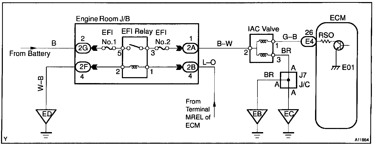 The ECM operates only the IAC valve to perform idle-up and provide feedback for the target idling speed.