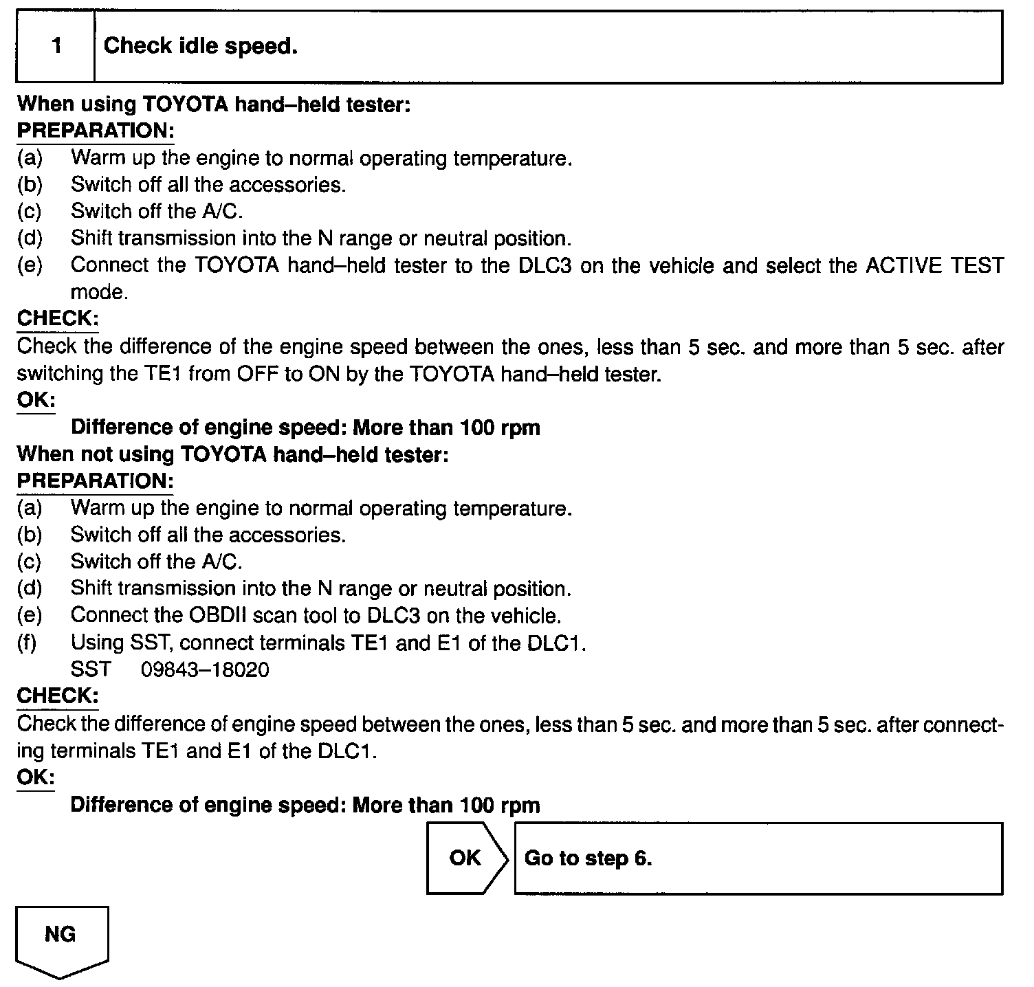 HINT: Read freeze frame data using TOYOTA hand-held tester or OBD II scan tool. Because freeze frame records the engine conditions when the malfunction is detected. When troubleshooting, it is useful for determining whether the vehicle was running or stopped, the engine was warmed up or not, the air-fuel ratio was lean or rich, etc. at the time of the malfunction.