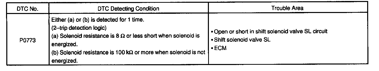 P0773 - Shift Solenoid E Electrical Malfunction (Shift Solenoid Valve SL)CIRCUIT DESCRIPTION