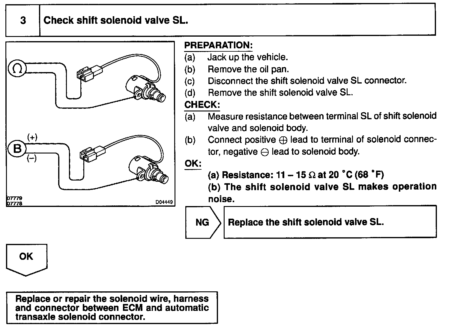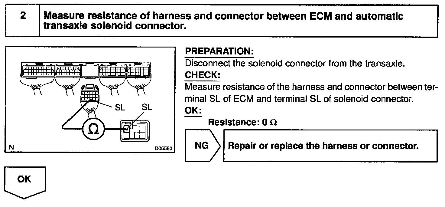 Fail safe function: If the ECM detects a malfunction, it turns the shift solenoid valve SL OFF.