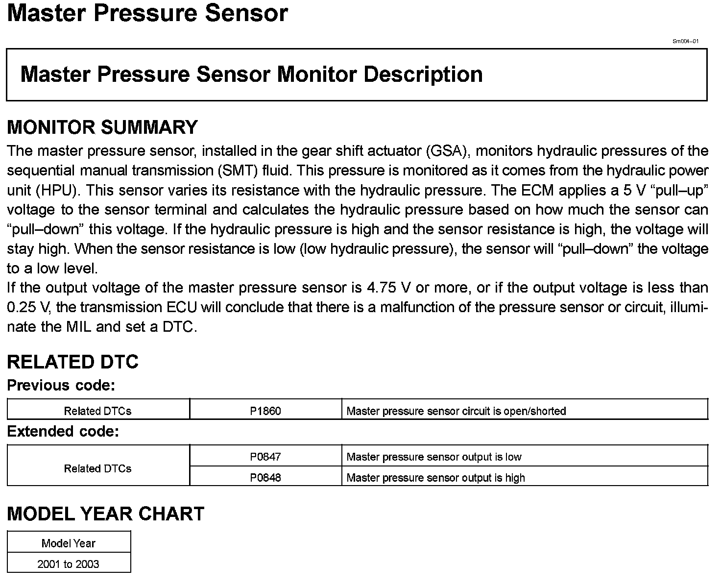 Master Pressure Sensor Monitor Description