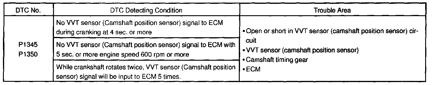 P1345 - VVT Sensor/CKP Sensor Circuit Malfunction (Bank 1)CIRCUIT DESCRIPTION
