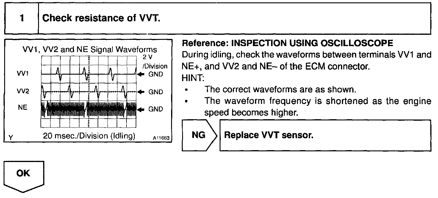 - If DTC P1350 is displayed, check right bank VVT sensor (camshaft position sensor).