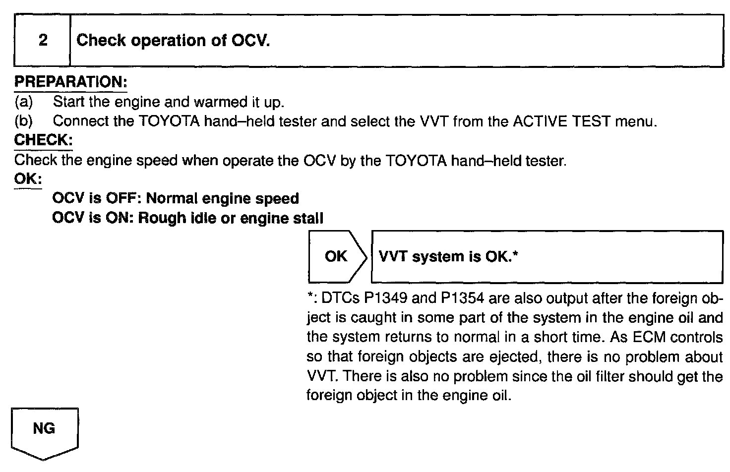 - If DTC P1349 is displayed, check left bank VVT system circuit.