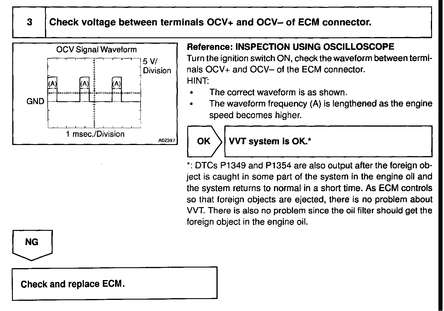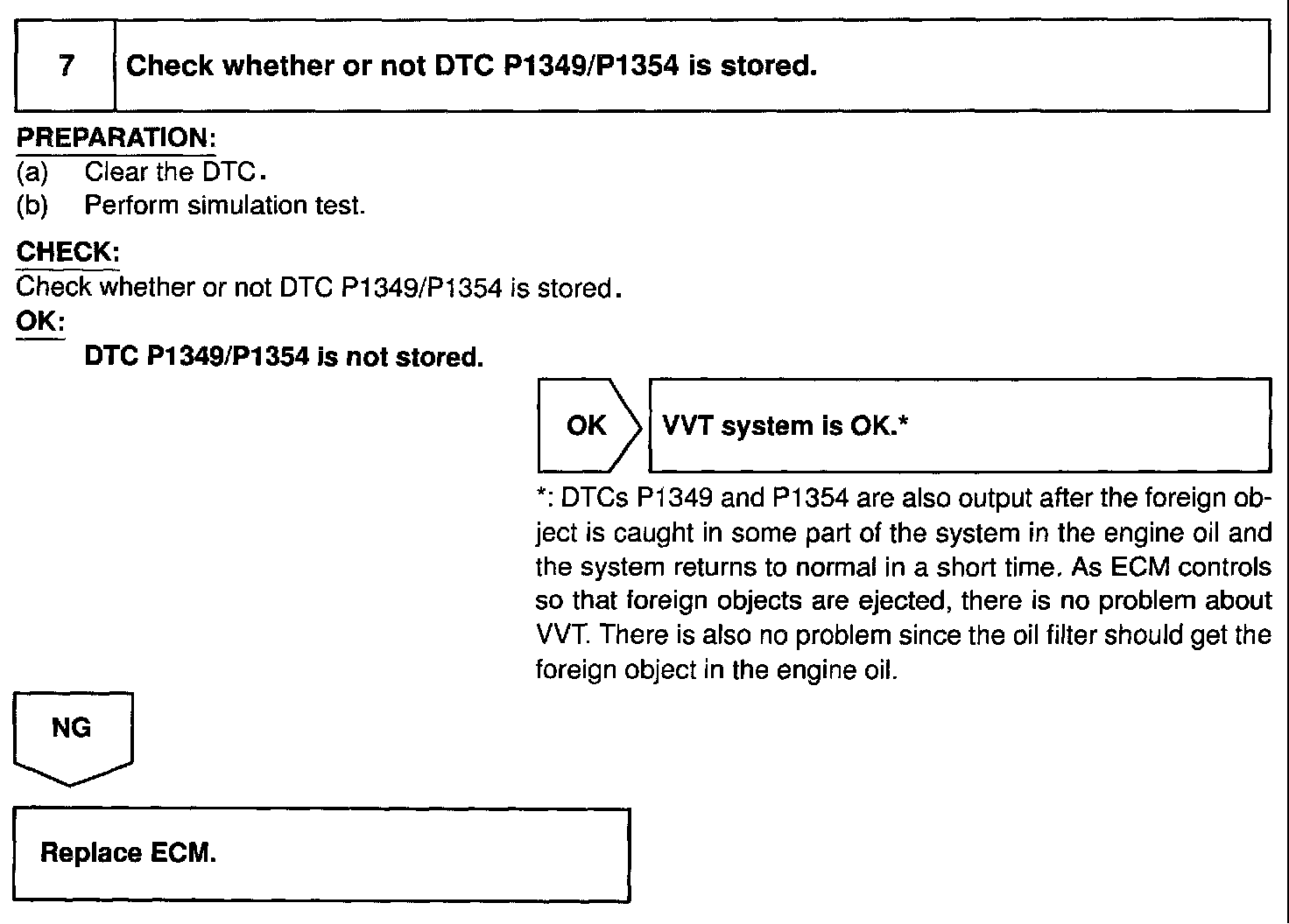 - If DTC P1354 is displayed, check right bank VVT system circuit.