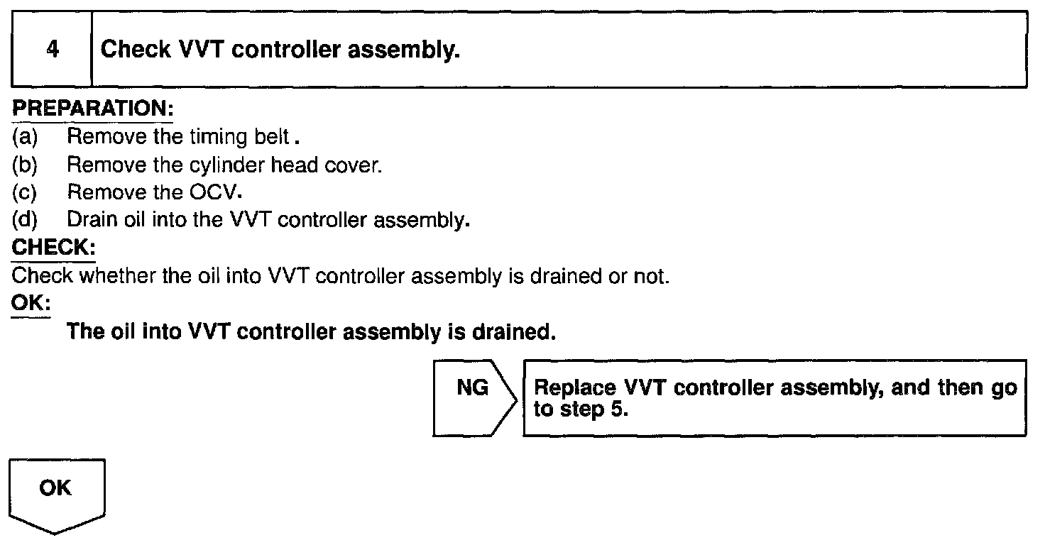 VVT system controls the intake valve timing to proper timing in response to driving condition. ECM controls Oil Control Valve (OCV) to make the intake valve timing properly, and, oil pressure controlled with OCV is supplied to the VVT controller, and then, VVT controller changes relative position between the camshaft and the crankshaft.