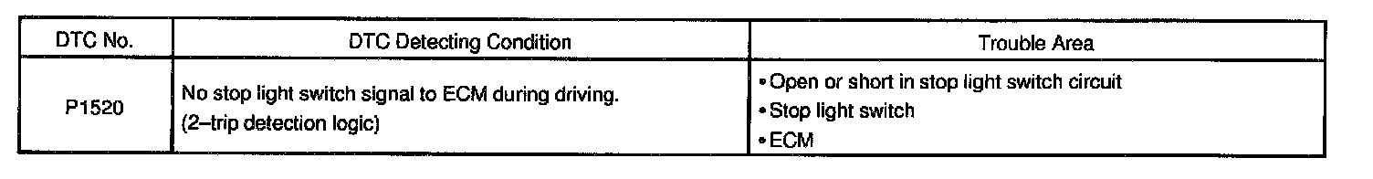 P1520 - Stop Light Switch Signal Malfunction / Transmission Control SystemCIRCUIT DESCRIPTION