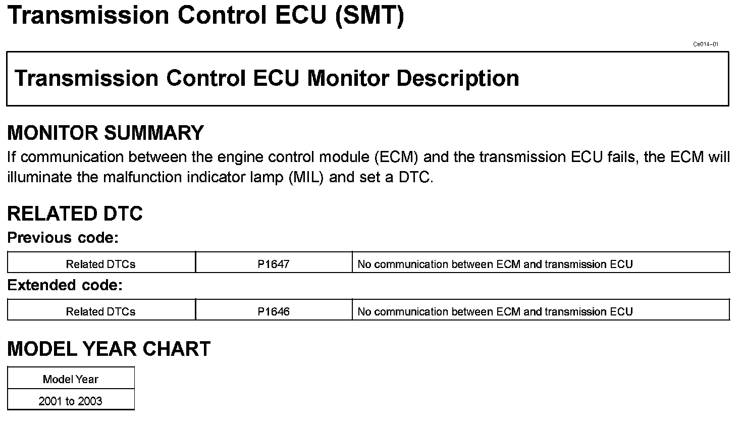 Transmission Control ECU Monitor Description