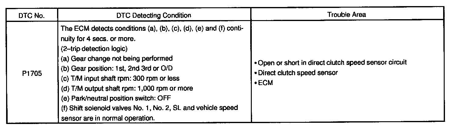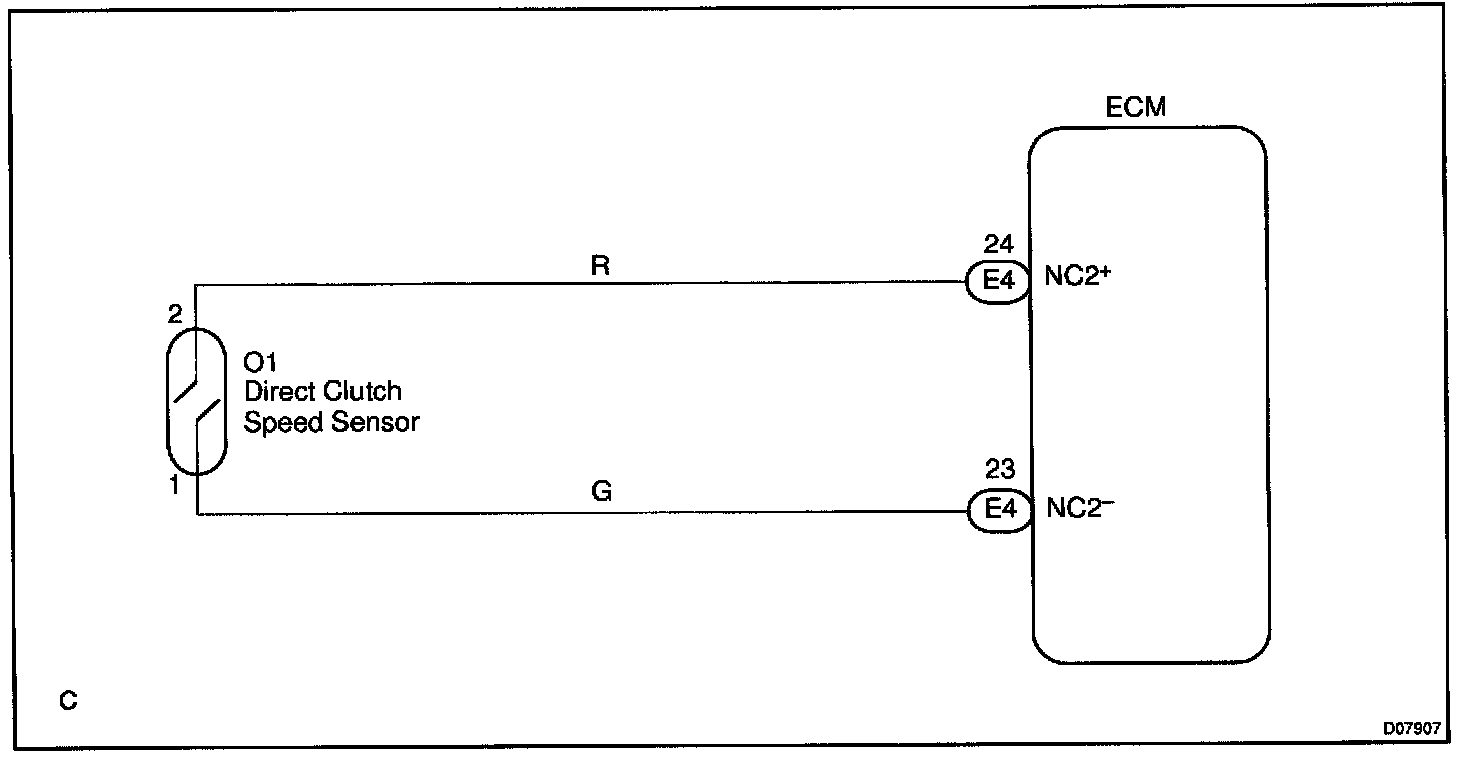 P1705 NC2 Revolution Sensor Circuit Malfunction (Direct Clutch Speed Sensor)CIRCUIT DESCRIPTION
