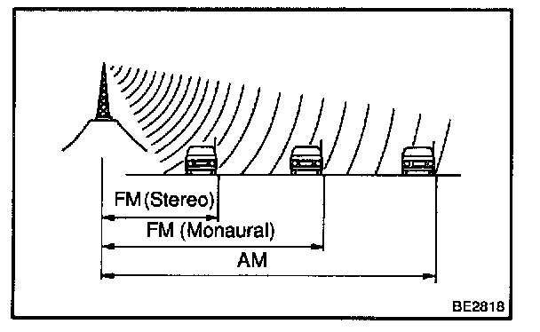 There are great differences in the size of the service area for AM and FM monaural. Sometimes FM stereo broadcasts cannot be received even through AM can be received in very clearly.