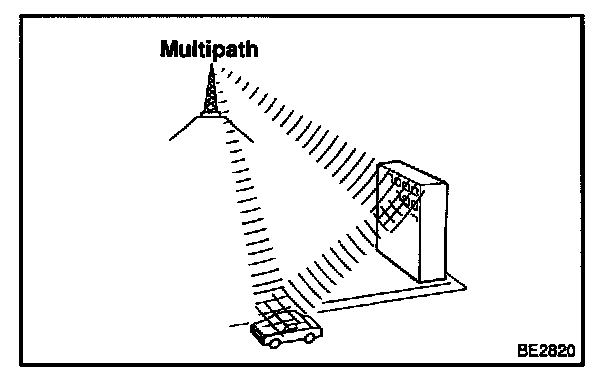 One type of interference caused by the bounce of radio waves off of obstructions is called "multipath". Multipath occurs when a signal from the broadcast transmitter antenna bounces off buildings and mountains and interferes with the signal that is received directly.