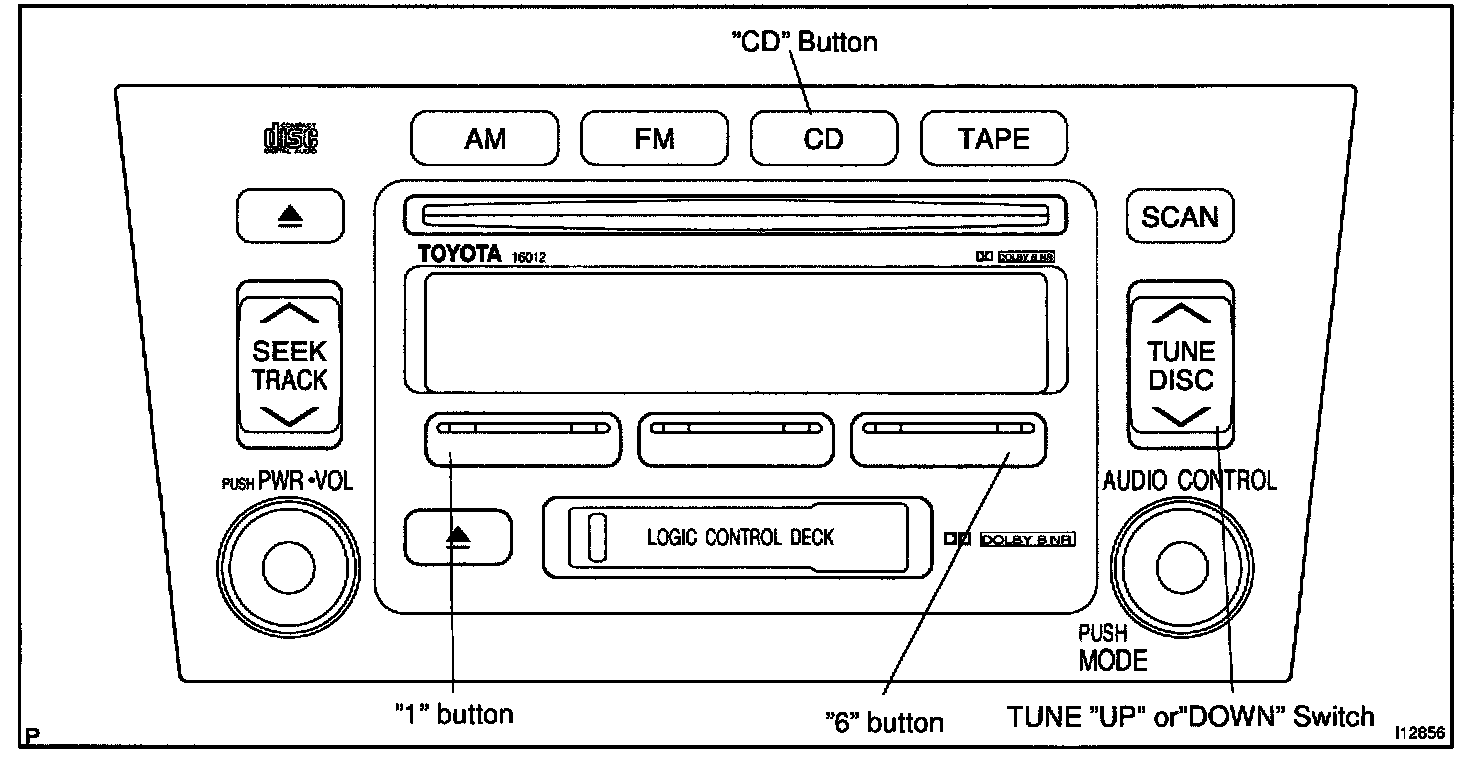 For shifting to diagnosis mode, push "CD" switch 3 times with pressing "1" and "6" of PRESET switch at the same time while the audio power is OFF and ACC is ON.