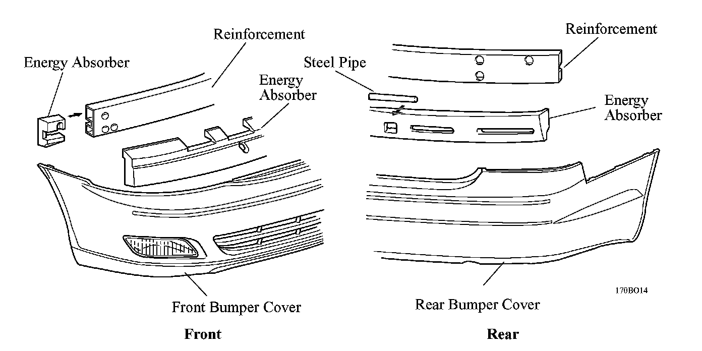 To reduce the damage sustained during a low-speed collision, an energy absorber has been added to each corner of the front reinforcement, and a steel pipe has been added to the rear reinforcement.