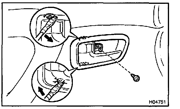 c. Using a screwdriver, remove the inside handle bezel as shown in the illustration.