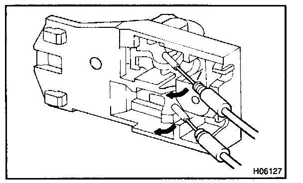 c. Disconnect the 2 cables from the inside handle as shown in the illustration.
