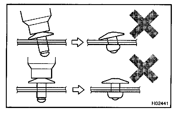 NOTE: Prizing the hole with a drill can lead to damage to the rivet hole or the drill itself.