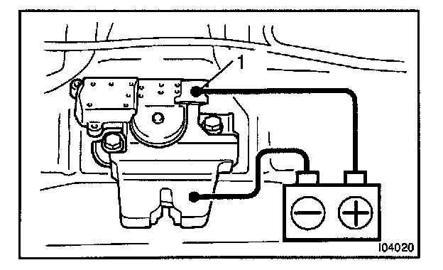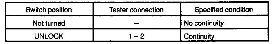 Connect positive (+) lead to the terminal 1 and negative (-) lead to the opener motor body, and check that the motor operated. If operation is not as specified, replace the lock.