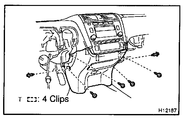 Remove the 4 bolts and radio assembly with heater control assembly, then disconnect the connectors.