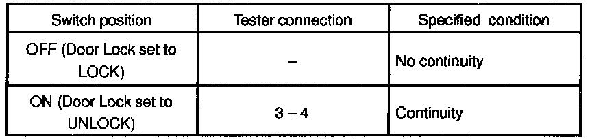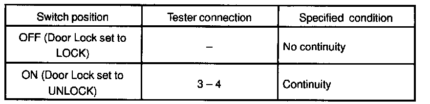 INSPECT DOOR KEY LOCK AND UNLOCK SWITCH CONTINUITY