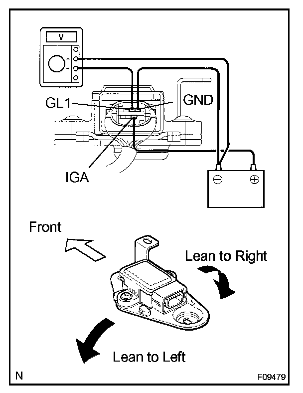 b. Connect IGA terminal to the battery positive (+) terminal, and GND terminal to the battery negative (-) terminal, and apply about 12 V between IGA and GND terminals.