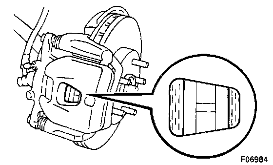 Check the pad thickness through the caliper inspection hole and replace the pads if it is not within the specification