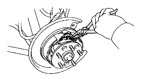 c. Using needle-nose pliers, disconnect the parking brake cable from the parking brake shoe lever.
