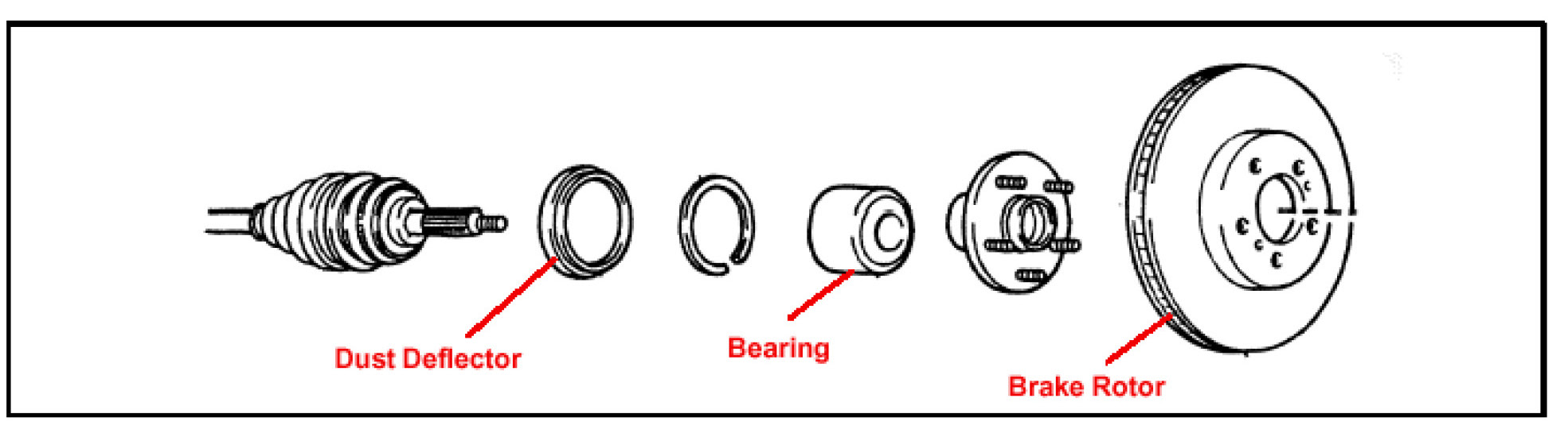 Some of the vehicles below may experience a ticking noise from the front wheel bearing dust deflector due to looseness of the dust deflector. To improve this condition, production parts have been changed.
