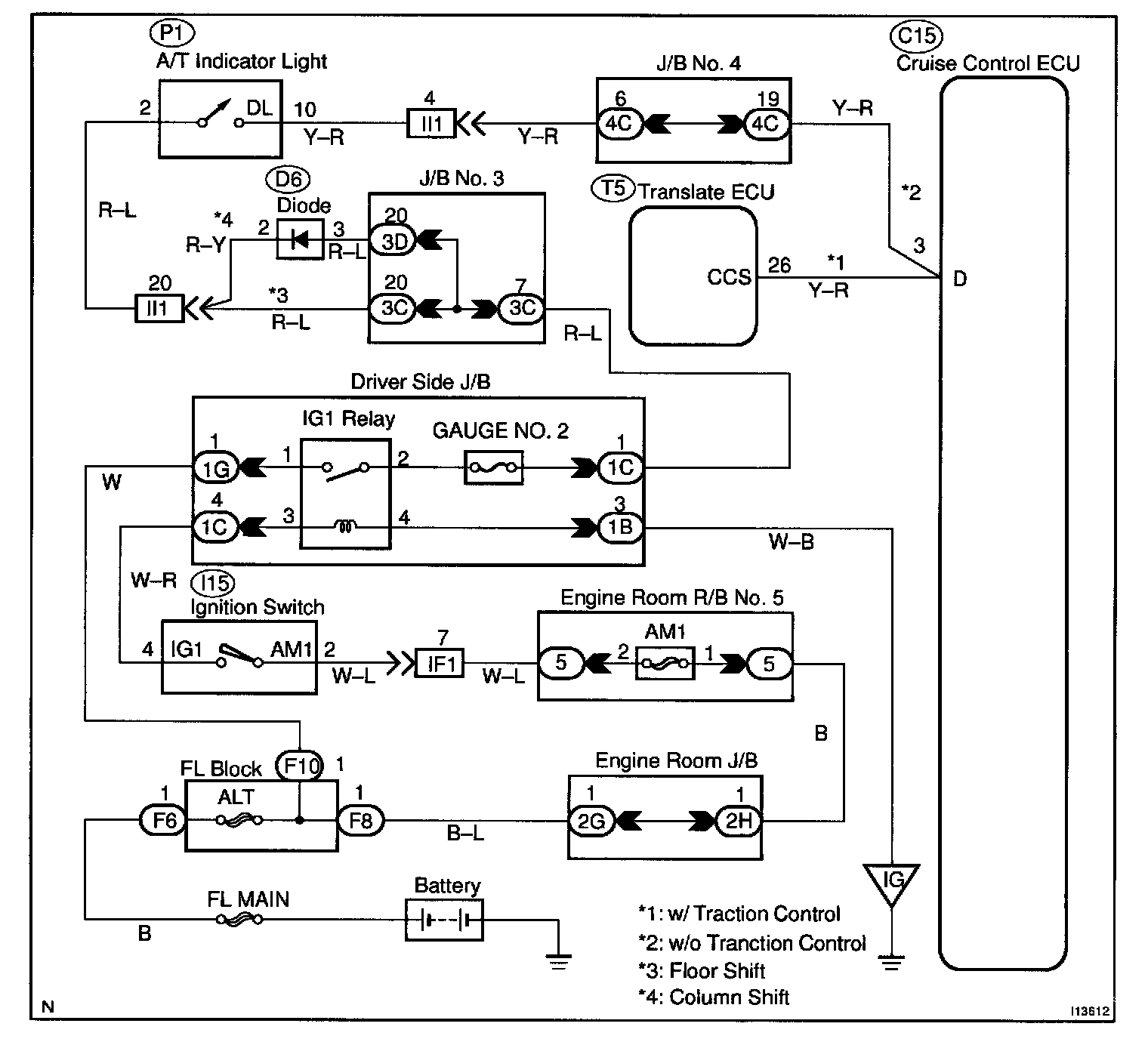 CIRCUIT DESCRIPTIONWhen the shift position is except D, a signal is sent from the park/neutral position switch to the ECU. When this signal is input during cruise control driving, the ECU cancels the cruise control.
