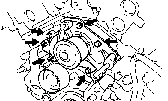 Remove the 4 bolts, 2 nuts, water pump and gasket.