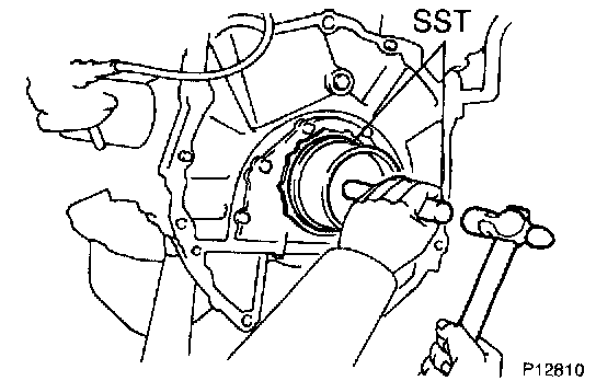 4) Using SST and a hammer, tap in the oil seal until its surface is flush with the rear oil seal retainer edge.