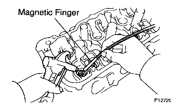 d. Using compressed air and a magnetic finger, remove the spring seat by blowing air.