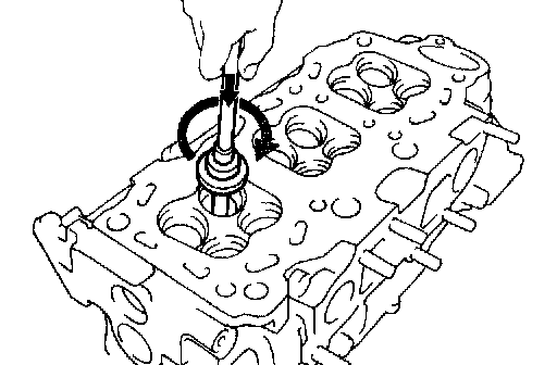 g. Using a sharp 5.5 mm reamer, ream the guide bushing to obtain the standard specified clearance between the guide bushing and valve stem.
