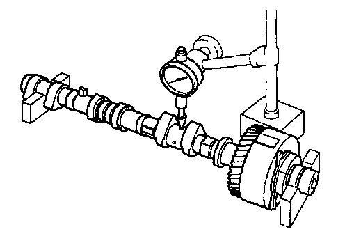 b. Using a dial indicator, measure the thrust clearance while moving the camshaft back and forth.