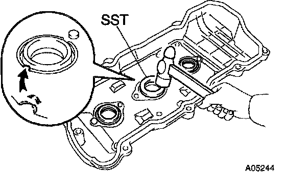 d. Using SST and a hammer, tap in a new gasket until its surface is flush with the upper edge of the cylinder head cover.