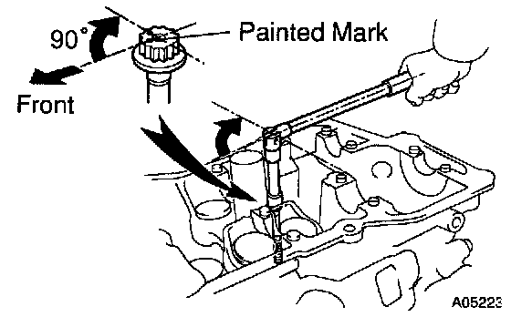 e. Retighten the cylinder head bolts by 90° in the numerical order shown.