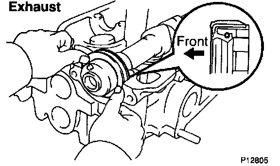 NOTICE: Since the thrust clearance of the camshaft is small, the camshaft must be kept leveled while it is being installed. If the camshaft is not kept leveled, the portion of the cylinder head receiving the shaft thrust may crack or be damaged, causing the camshaft to seize or break. To avoid this, the following steps should be carried out.