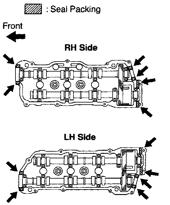 a. Apply seal packing to the cylinder heads as shown in the illustration.