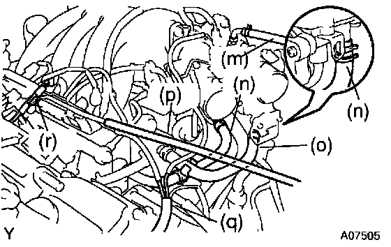 p. Disconnect the purge hose from the pipe on the emission control valve set.