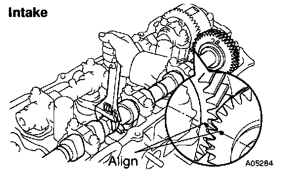 HINT: When removing the camshaft, make certain that the torsional spring force of the sub gear has been eliminated by the above operation.