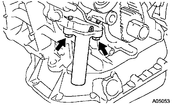 b. Hold the tensioner with both hands and push the push rod strongly as shown to check that it doesn't move.