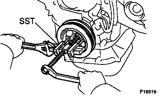a. Using Special Service Tool (SST), remove the pulley bolt.