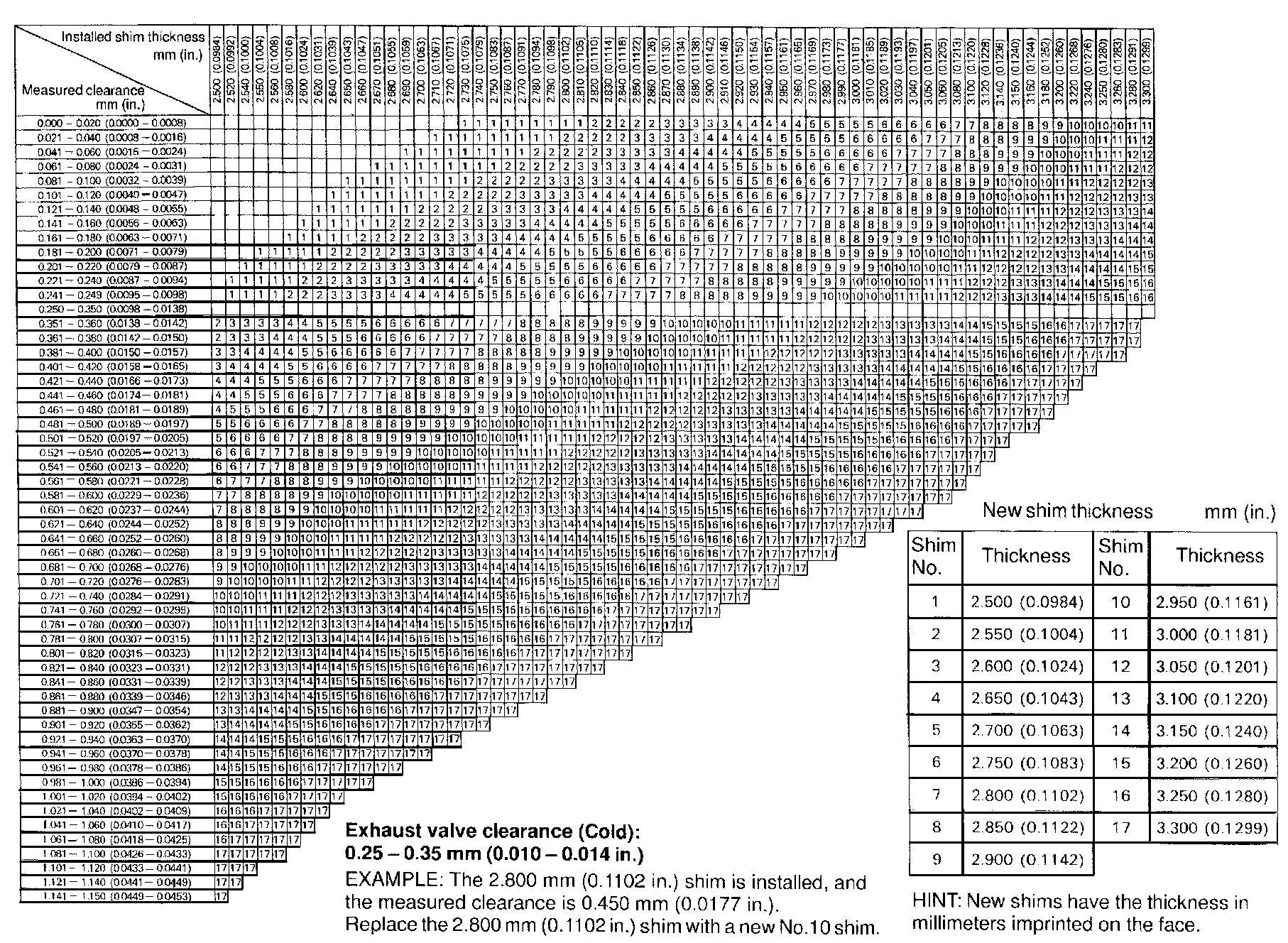 Exhaust: 0.25 - 0.35 mm (0.010 - 0.014 inch)
