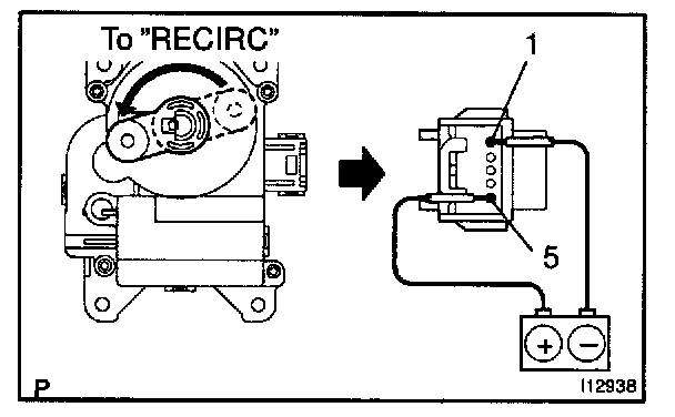 4. Check the motor arm rotates counterclockwise and arm stops on the "RECIRC" position.
