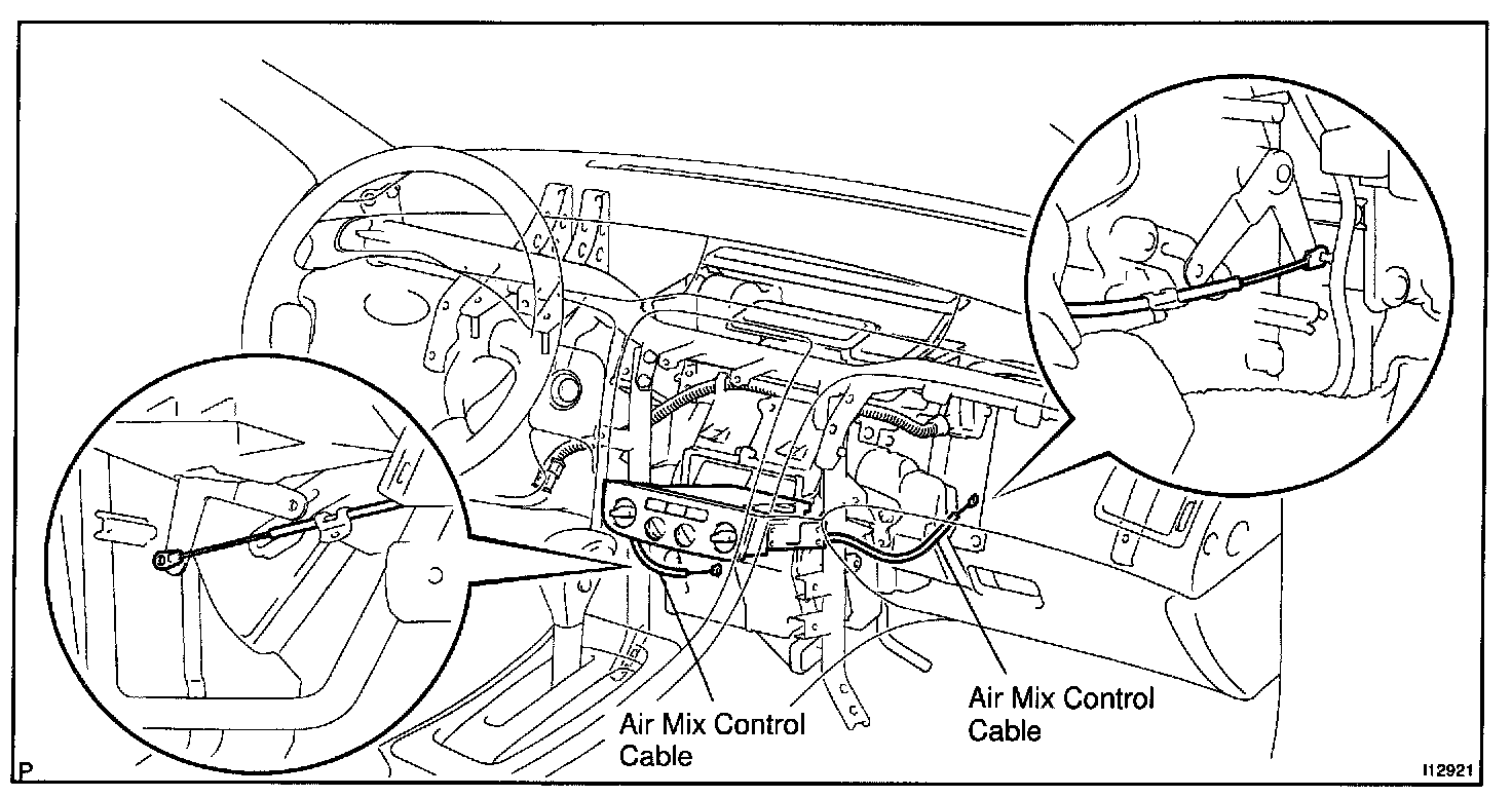 NOTE: When the air mix damper control cable is disconnected, should not bend the cable.