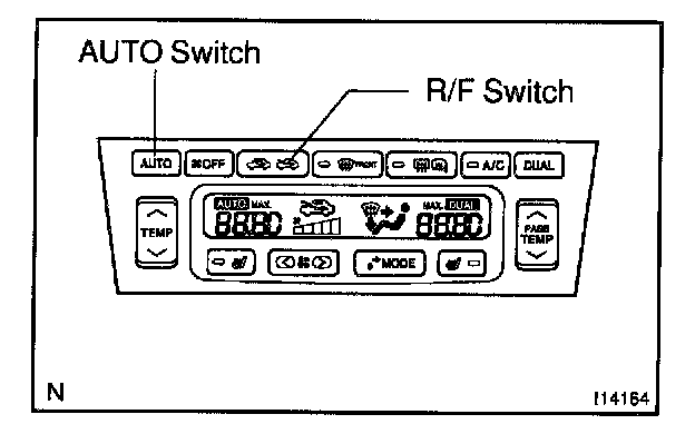 Indicator Checka. Turn the ignition switch on while pressing the air conditioning control AUTO switch and R/F switch simultaneously.