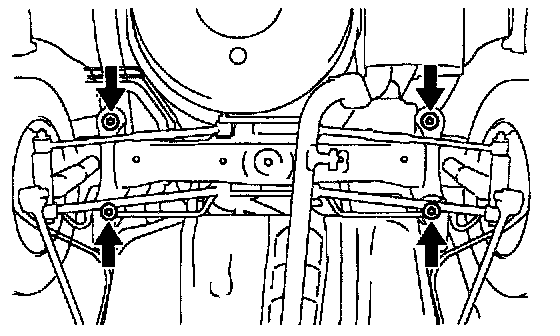 - Front suspension member-to-body mounting bolts