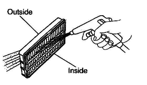 First blow from the inside thoroughly, then blow oft the outside of the air filter.