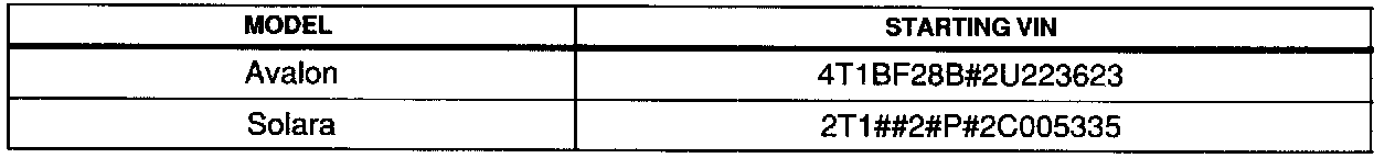 ^ 2000 - 2002 model year Avalon vehicles produced before the VIN shown below.