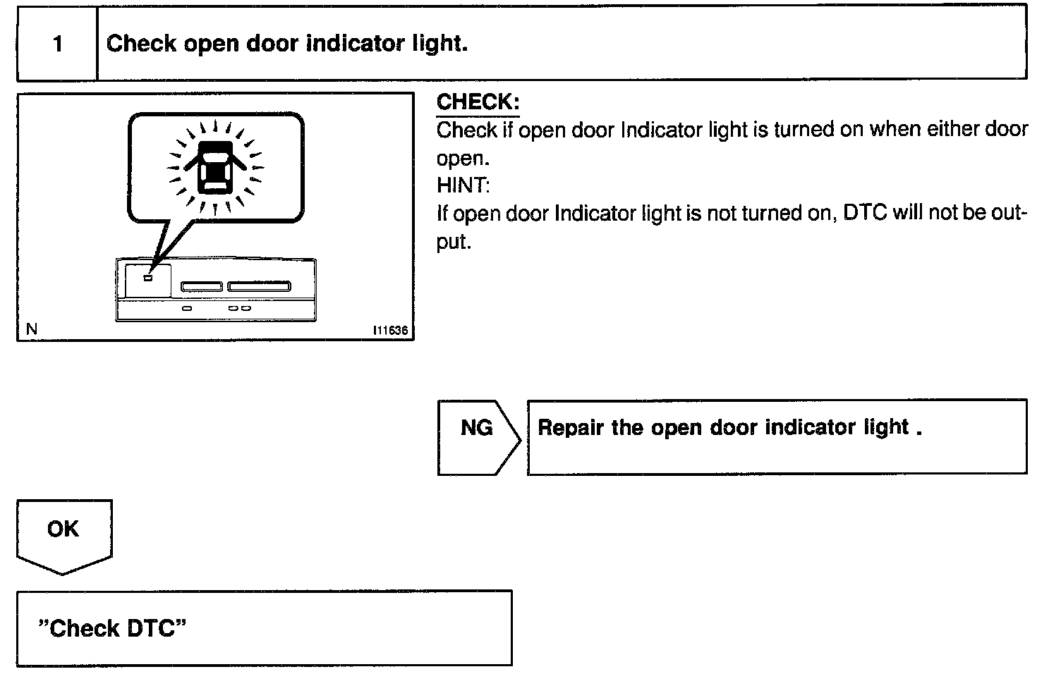 Inspect Open Door Indicator Light: