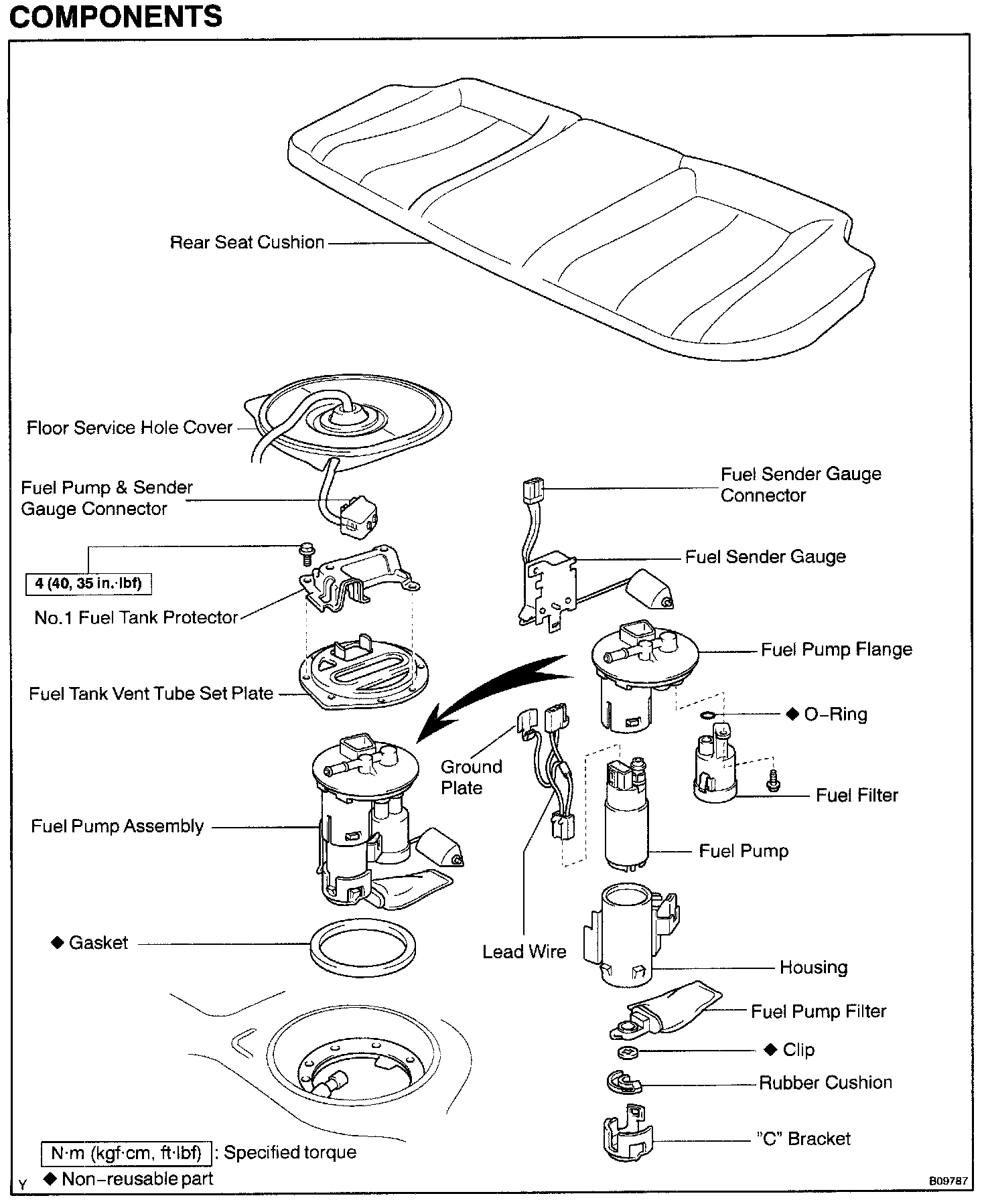 The fuel filter is part of the fuel pump assembly located underneath the rear seat cushion inside the fuel tank.